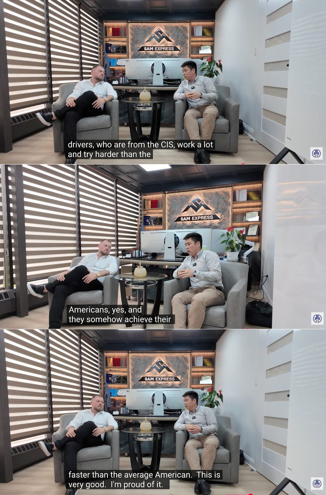Another company video offers further insight into how that growth was sustained regarding driver recruitment: “Drivers from the CIS countries often work harder and push themselves more, and they reach their goals faster than the average American. I’m proud of that.”