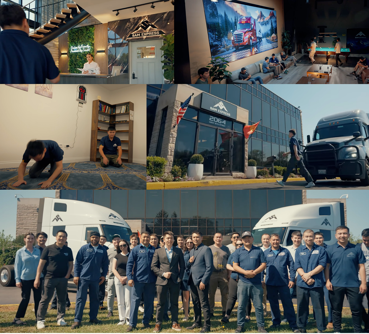 By its own description, Sam Express Inc. is driver-first, built by people who “lived the driver’s life,” grounded in respect and transparency. The video shows showers, halal meals, hotel-style rooms, lounges, and even a gym. The promise is more than employment, it’s a route to the American dream!