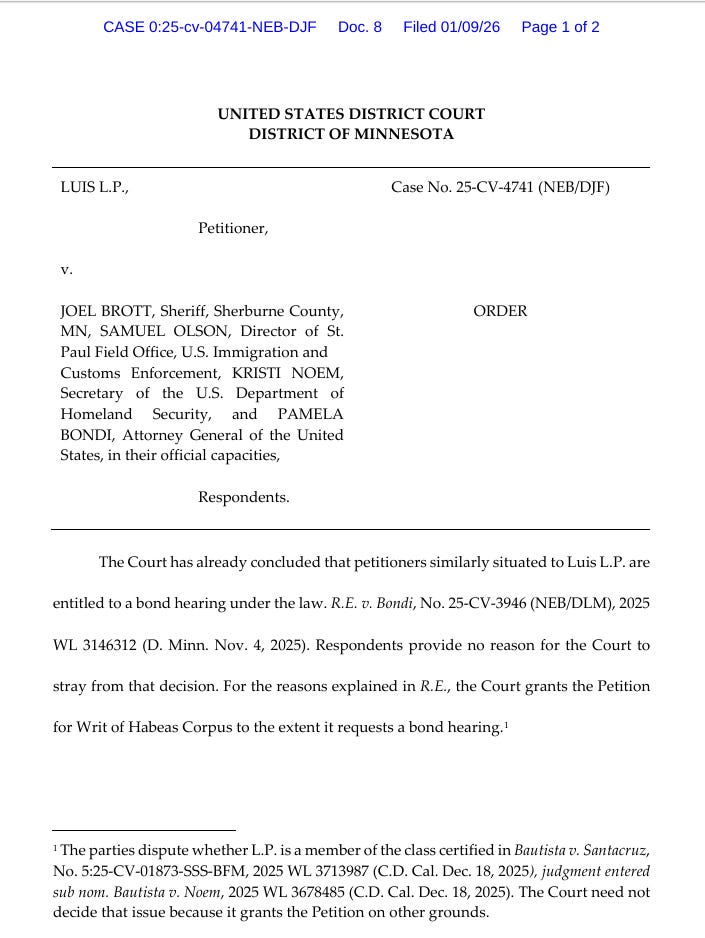 Schiltz also counted one court order twice in the first ten cases listed. Further, that particular Jan. 15, 2026 cannot be viewed because it is, conveniently, under seal. But regardless of the nature of the secret filing, the Jan. 15 order represented the first substantive order in that case. So how can ICE violate a court order in a case when it’s the very first one?