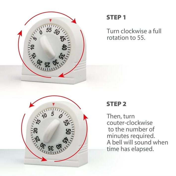 Although the dial face displays hash marks numbered 0 through 59, the small raised knob in the center—positioned between “0” and “30”—is fixed in place. It does not move or indicate time; it serves only as the grip used to twist the dial.