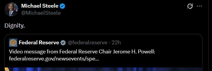So the opaque, unaccountable, flush, profligate, and powerful fiefdom of the Federal Reserve should make for a top target of the “No Kings” whiners. That, however, is not the case. Loyal subjects to King Powell quickly and publicly professed their undying loyalty.