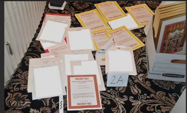 No photo other than his mugshot is more representative of the unprecedented lawfare against Donald Trump than the photo of alleged classified documents discovered during the nine-hour armed raid of Mar-a-Lago on August 8, 2022.